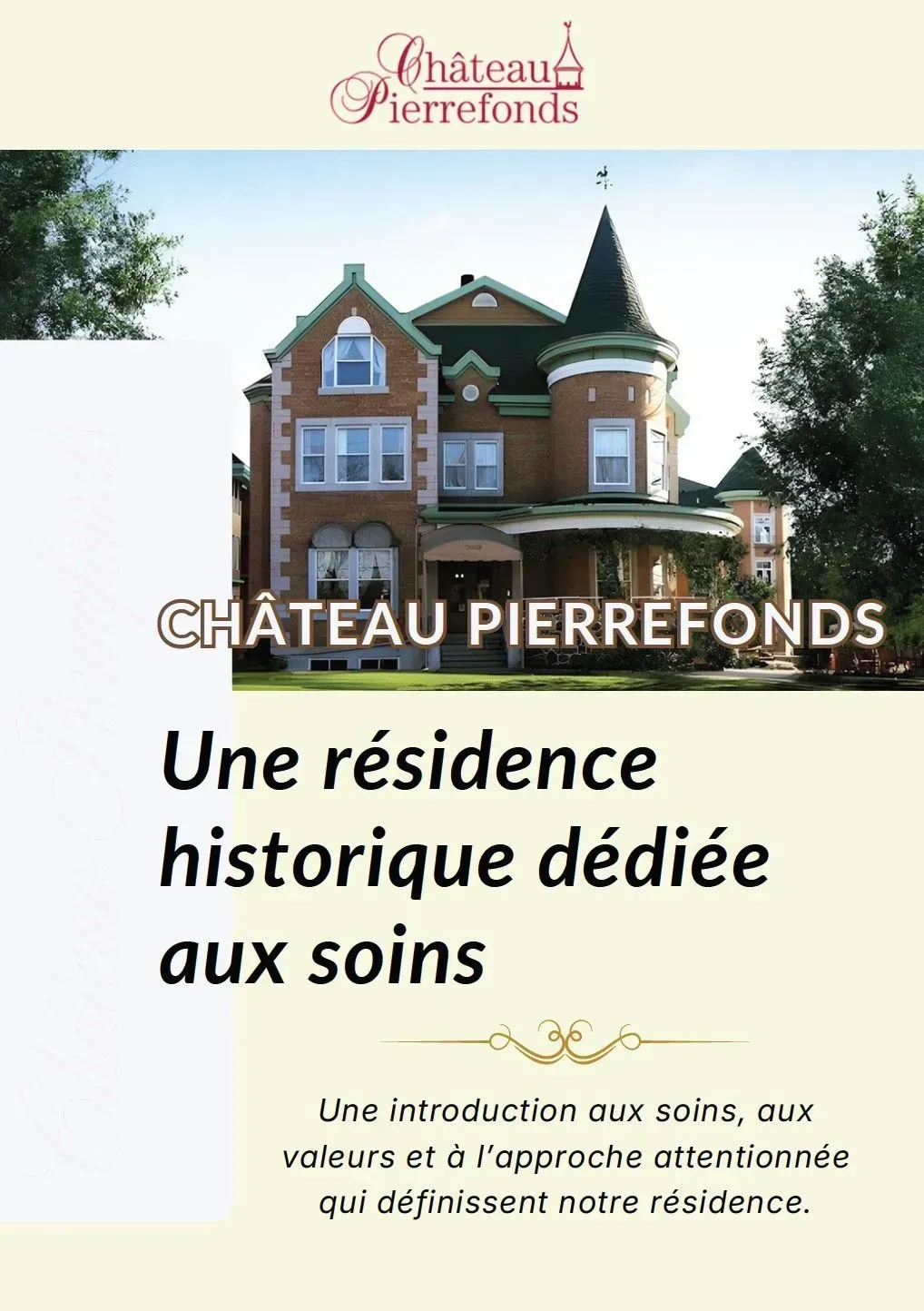 Recevez notre brochure complète pour découvrir un milieu de vie chaleureux, ses services et son approche humaine.